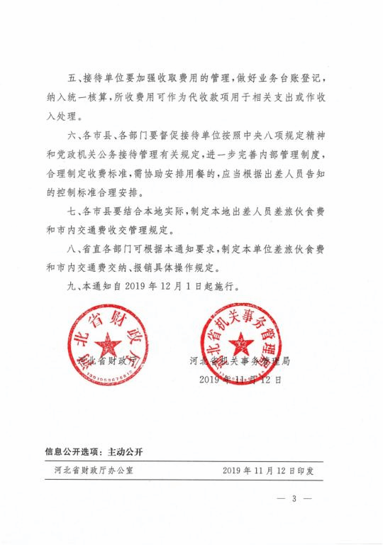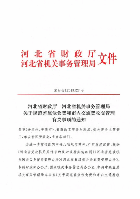 关于规范差旅伙食费和市内交通费收交管理有关事项的通知-冀财行【2019】27号