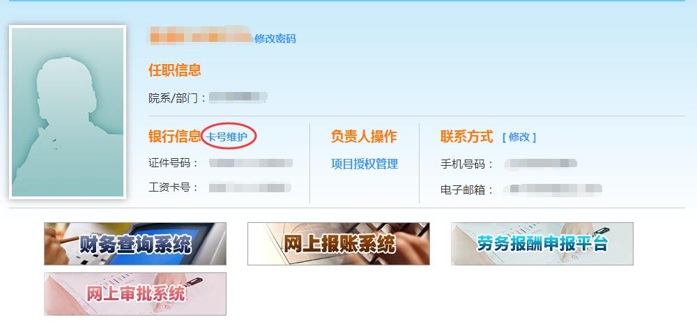 为了解决学生更换银行卡后未到计划财务处登记而影响退费、补助及劳务费等款项的发放问题,我处在财务系统中开通了“卡号维护”功能。目前只支持工商银行卡(不限地区)、秦皇岛本地的建设银行和农业银行卡。更改完银行卡号不再需要到计划财务处登记。